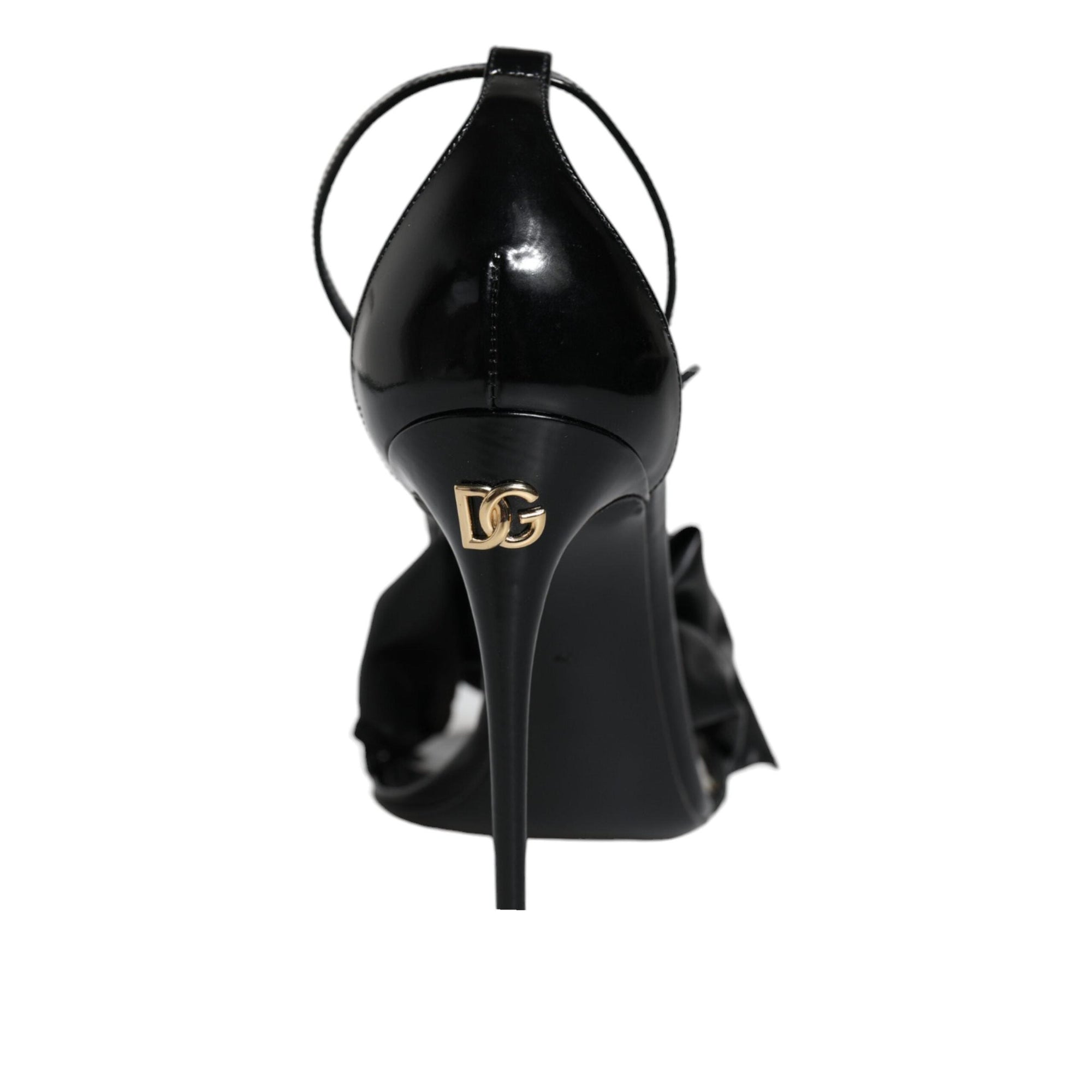 Dolce & Gabbana Black Leather Ankle Strap Heel Sandals Shoes