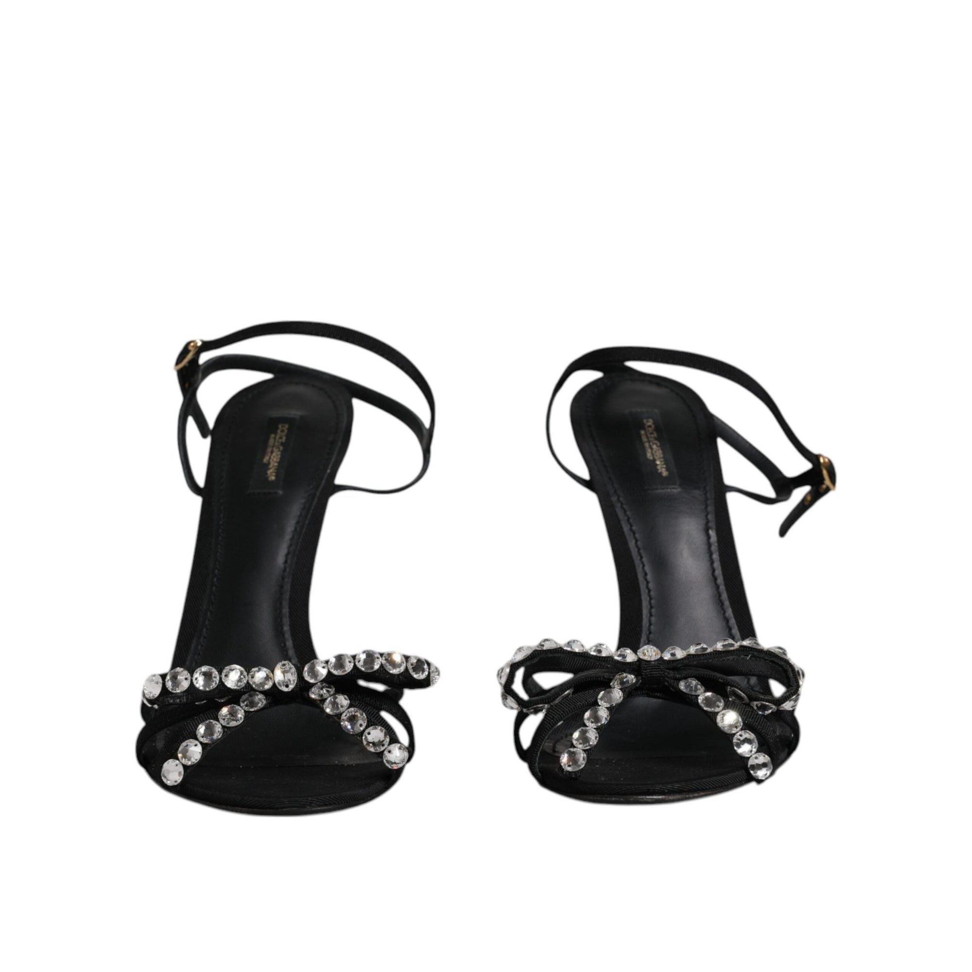 Dolce & Gabbana Black Leather Crystal Heels Sandals Shoes