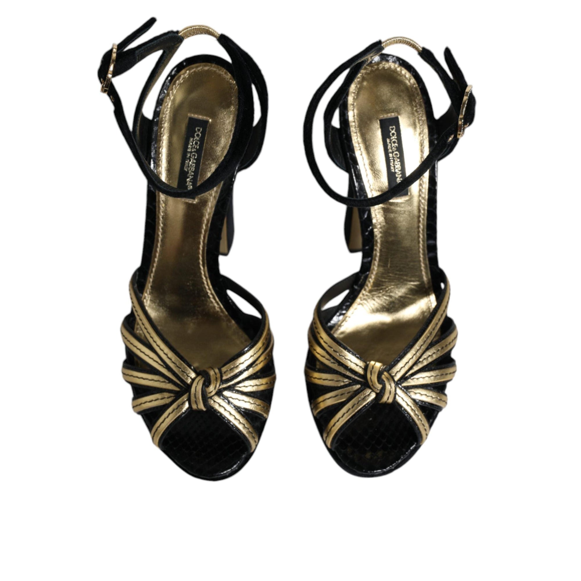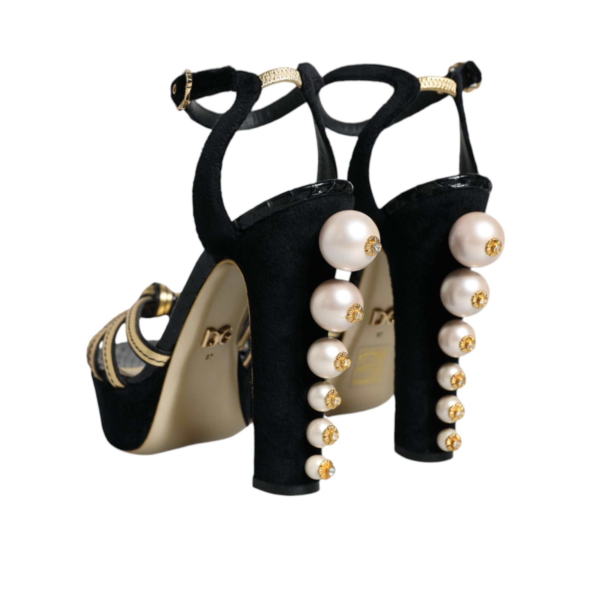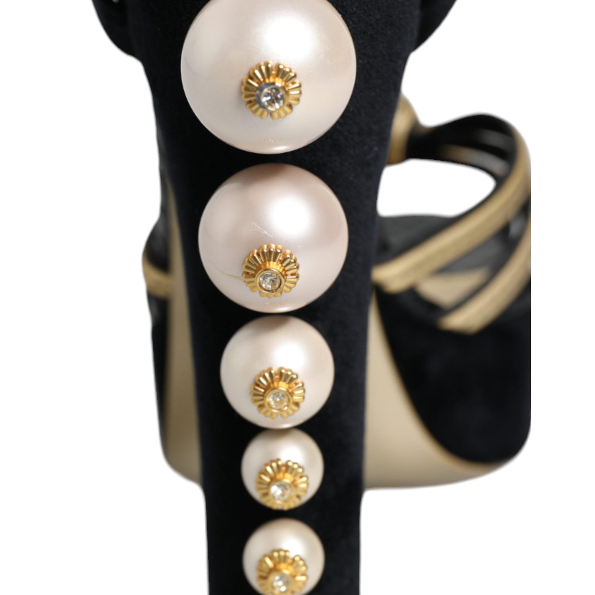 Dolce & Gabbana Black Leather Faux Pearl Heel Sandals Shoes