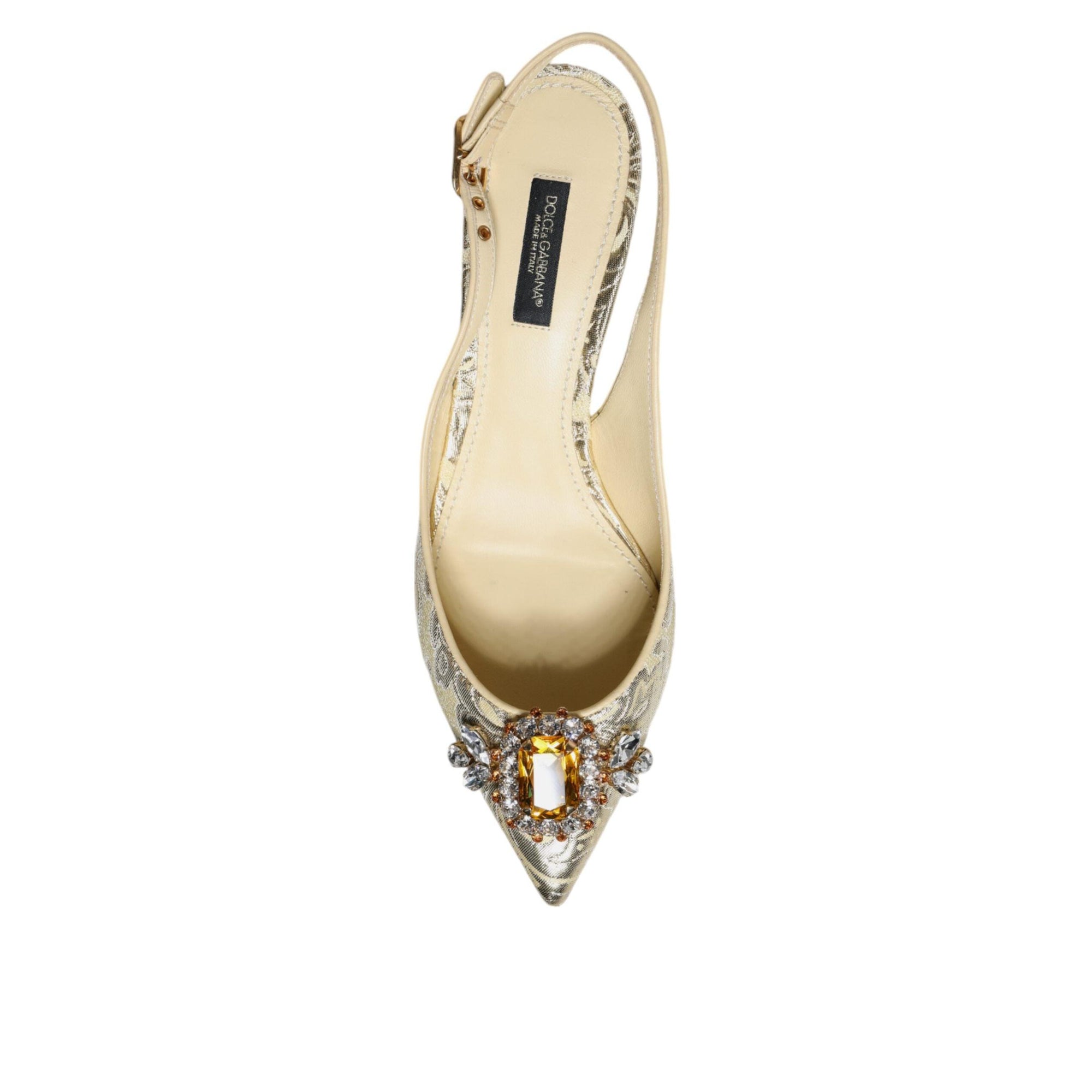 Dolce & Gabbana Gold Crystal Pumps Heels Slingbacks Shoes