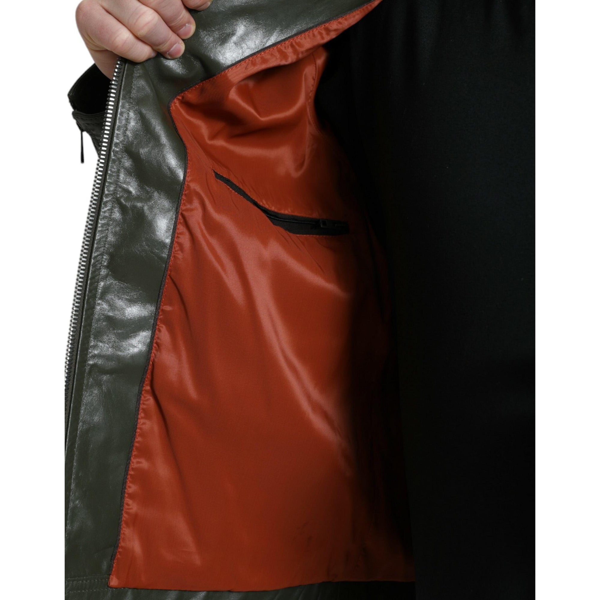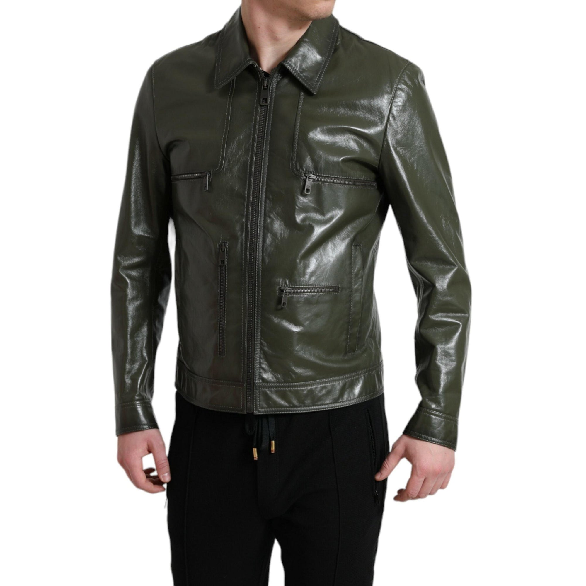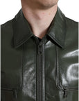 Dolce & Gabbana Emerald Elegance Leather Biker Jacket