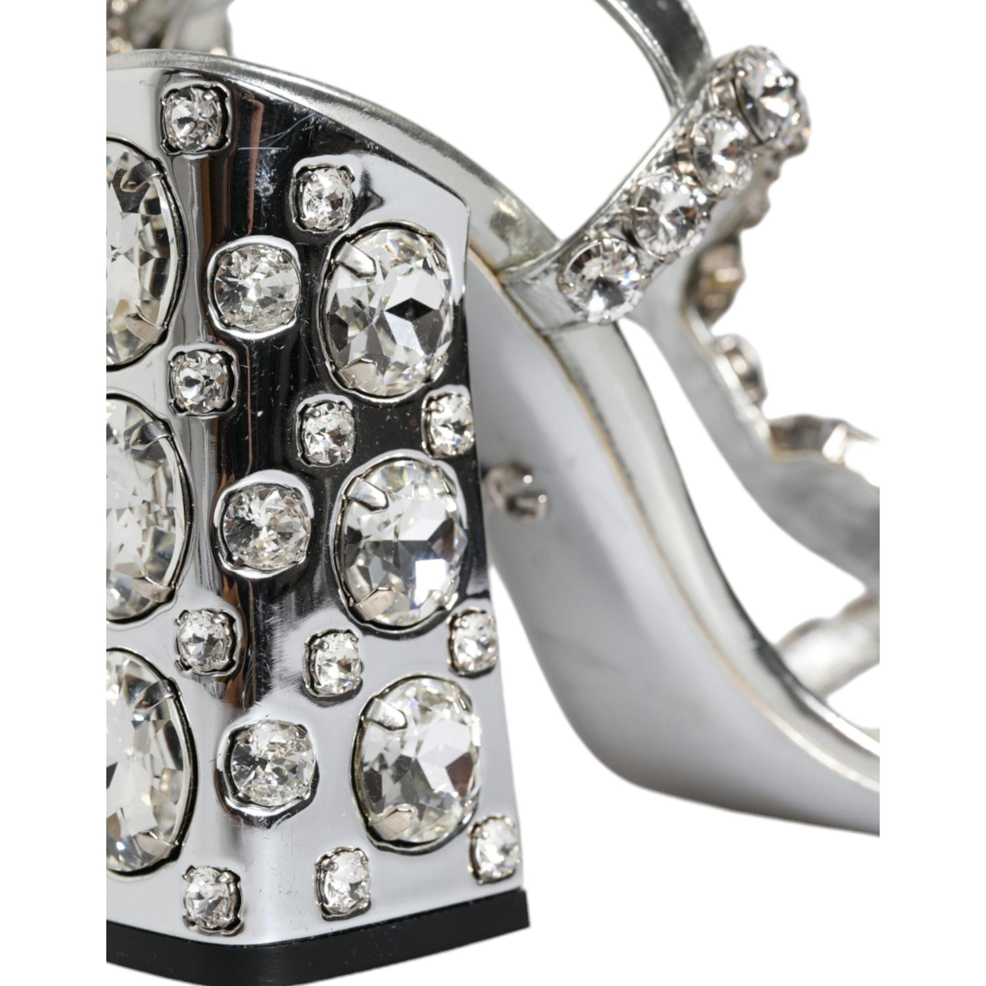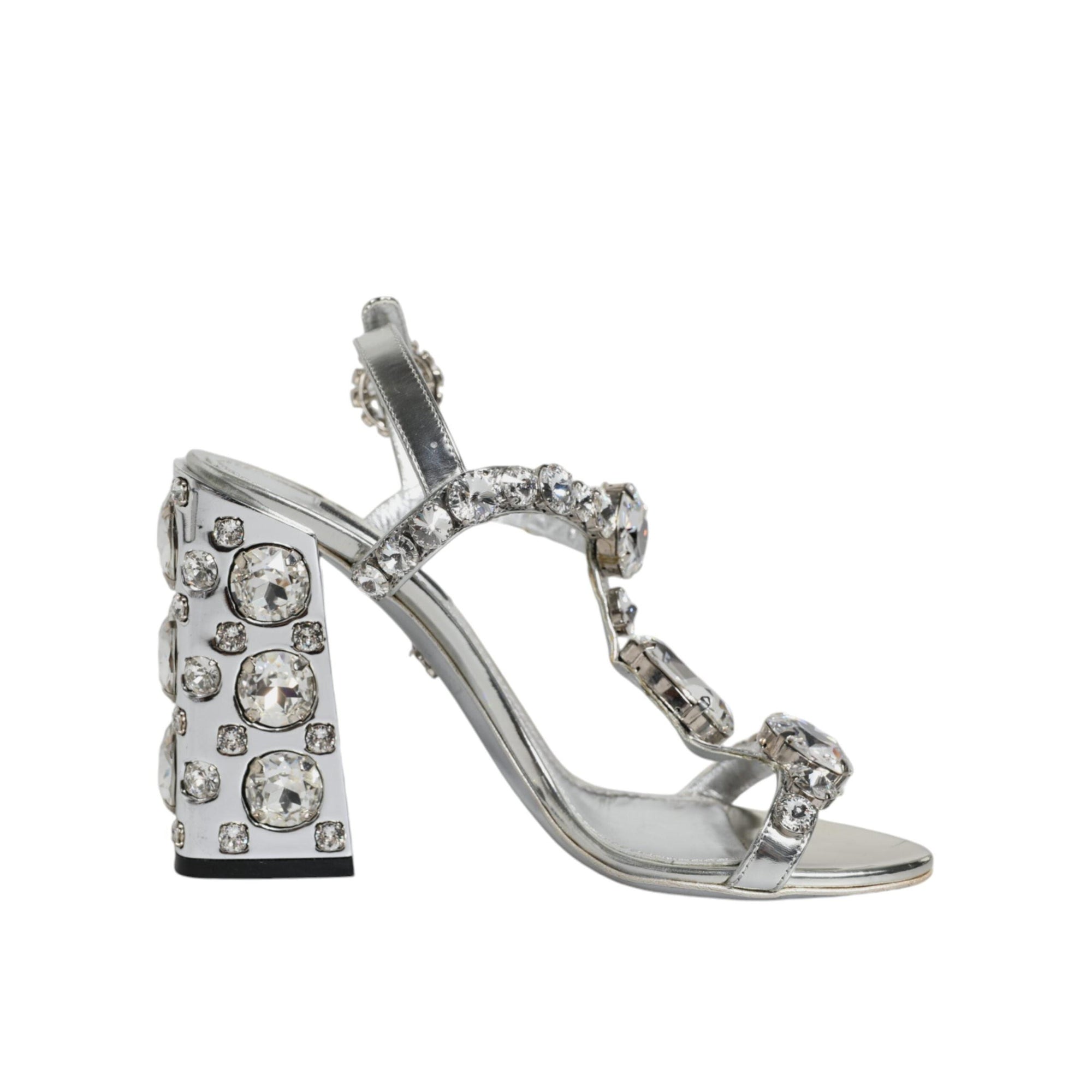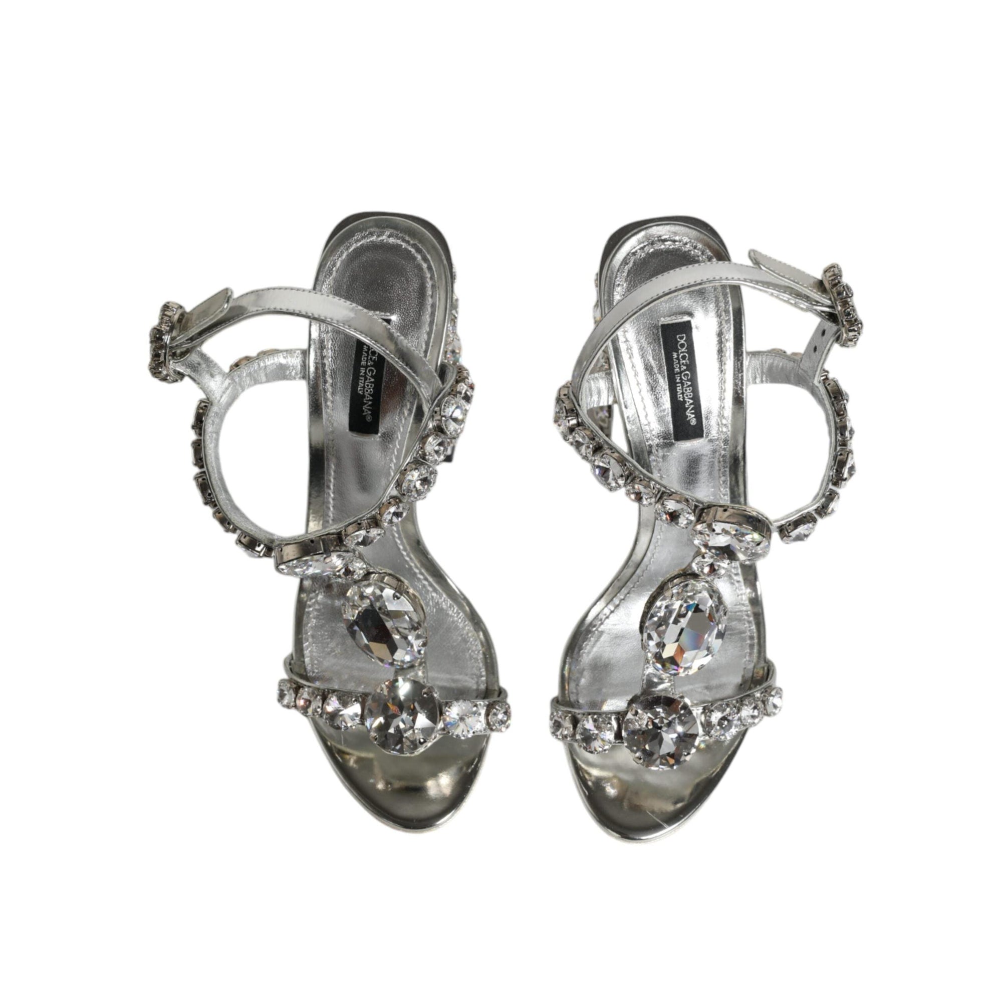 Dolce & Gabbana Silver Leather T-strap Crystal Sandals Shoes