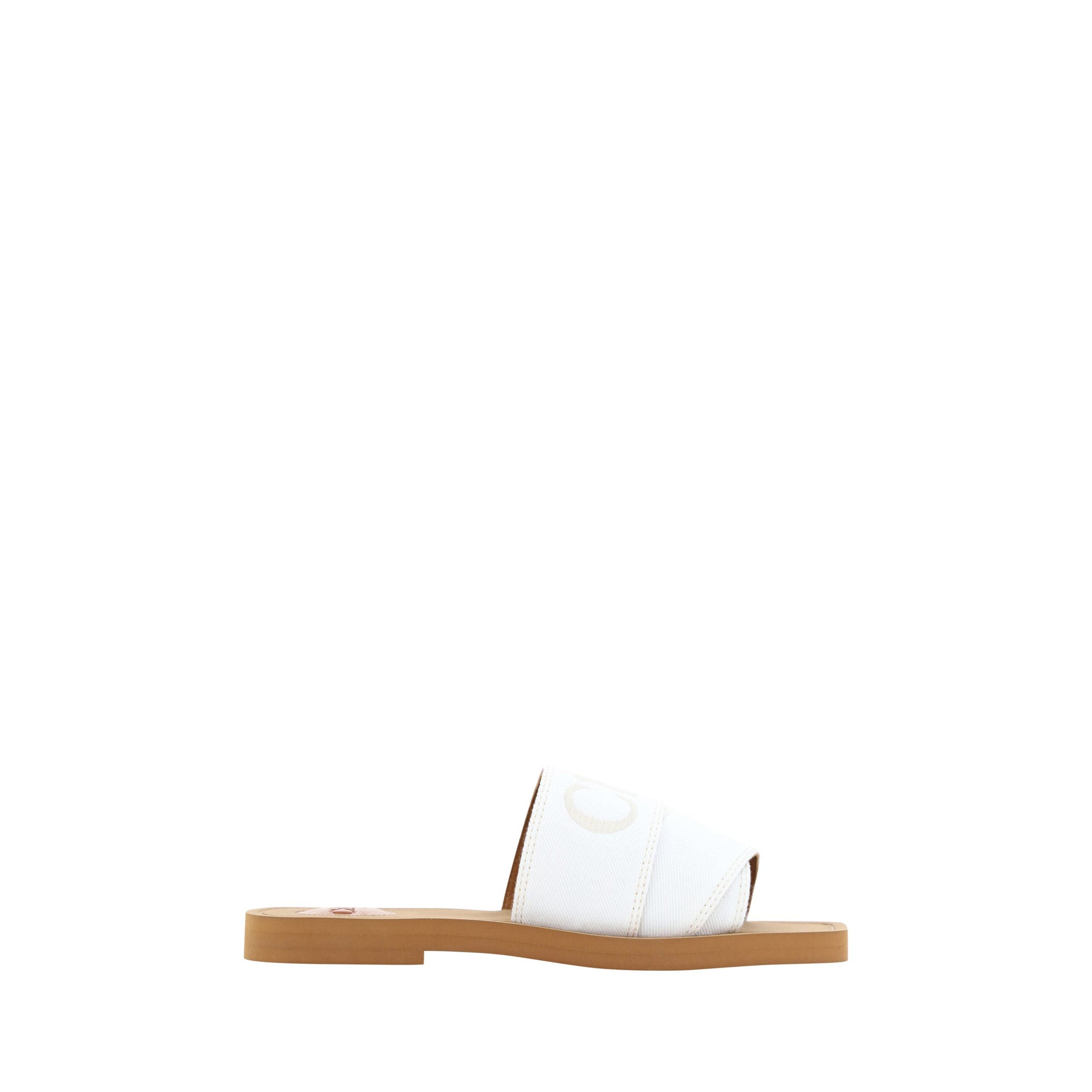 Chloé Elegant White Cotton Slide Sandals
