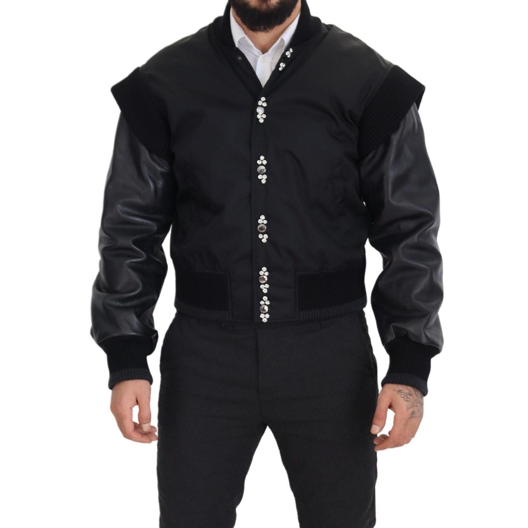Dolce & Gabbana Elegant Black Crystal-Embellished Bomber Jacket