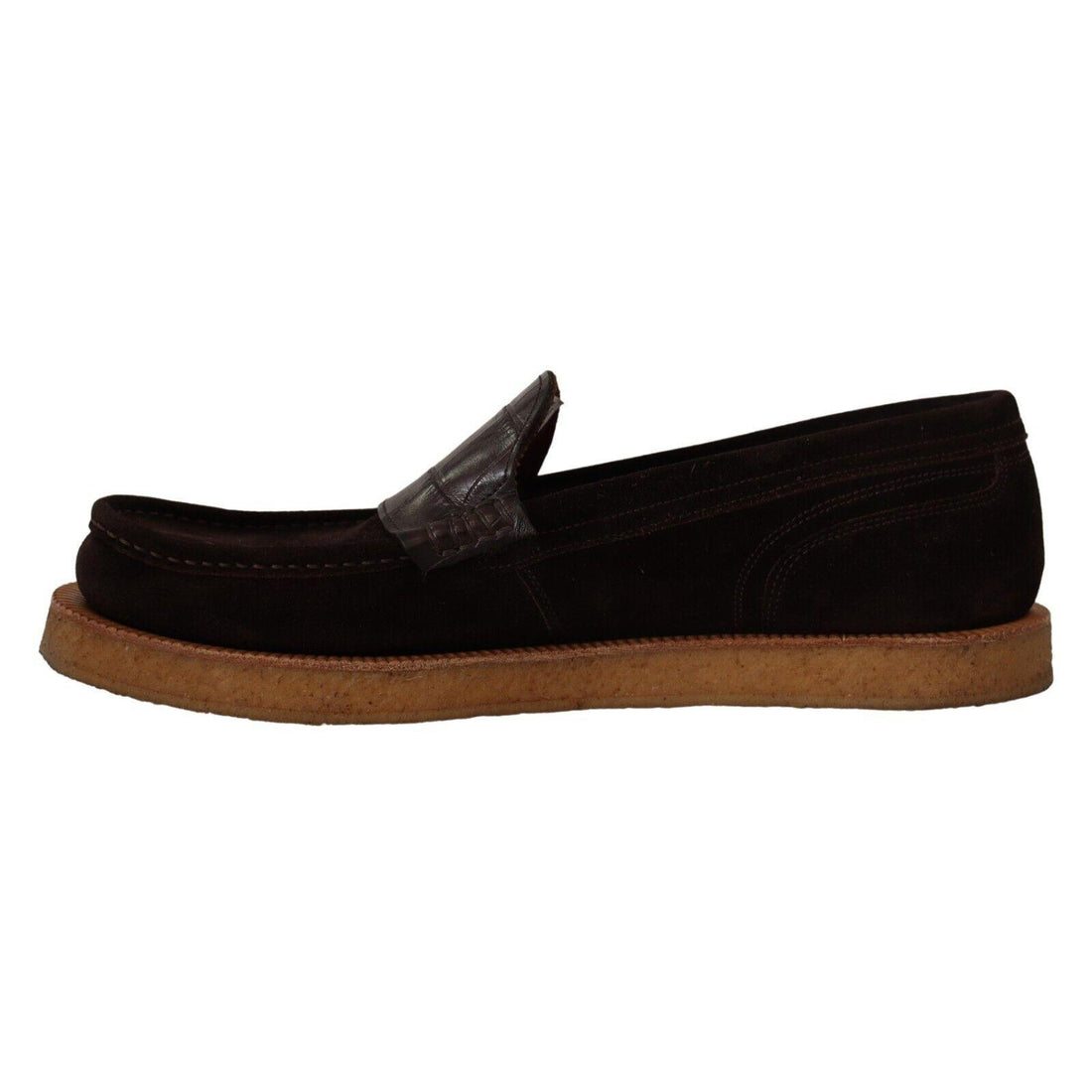 Dolce & Gabbana Elegant Suede Crocodile Loafers in Brown
