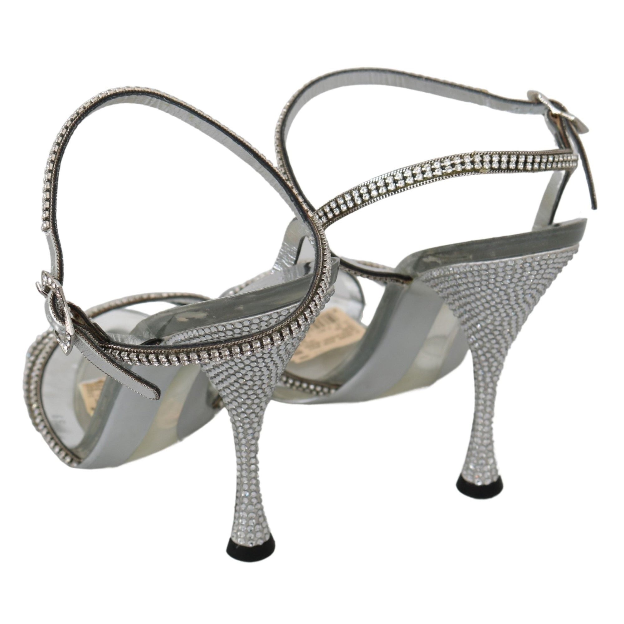 Dolce & Gabbana Silver Leather Ankle Strap Sandals with Crystals