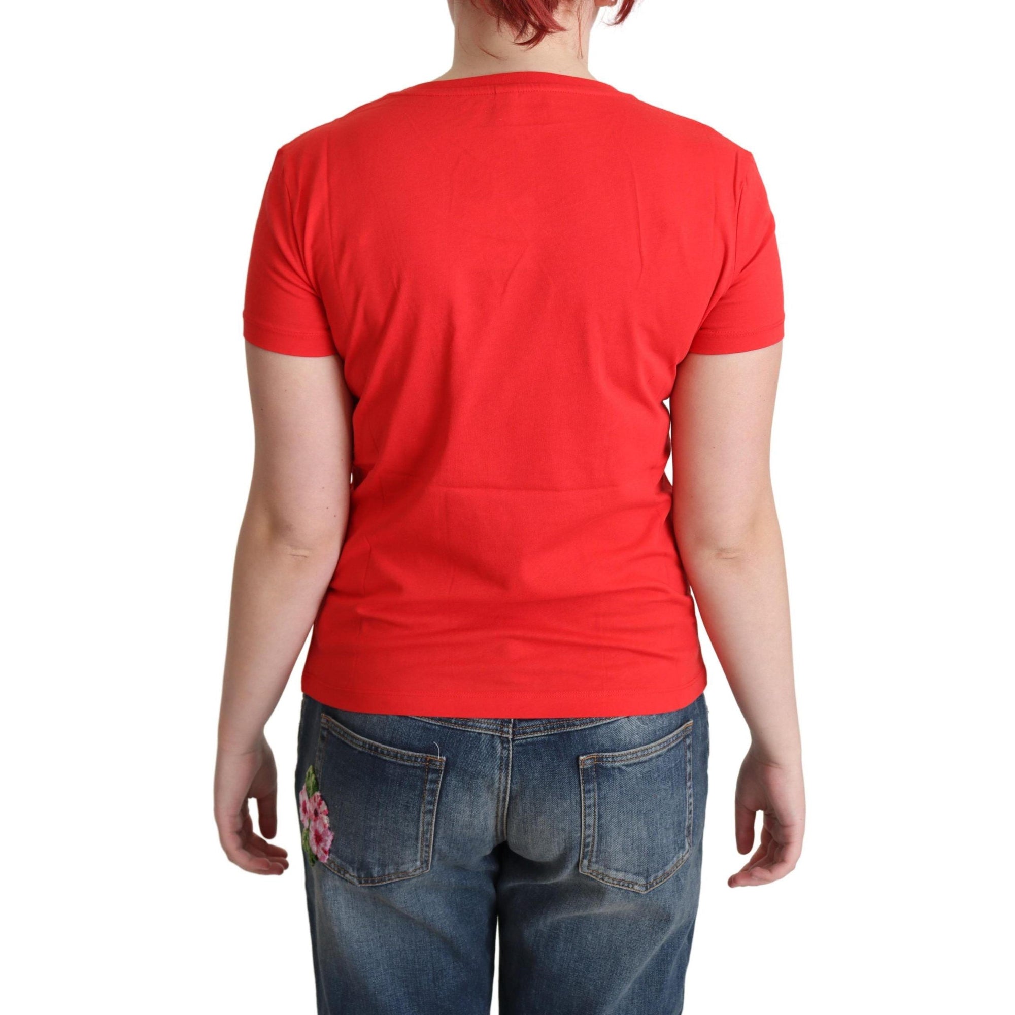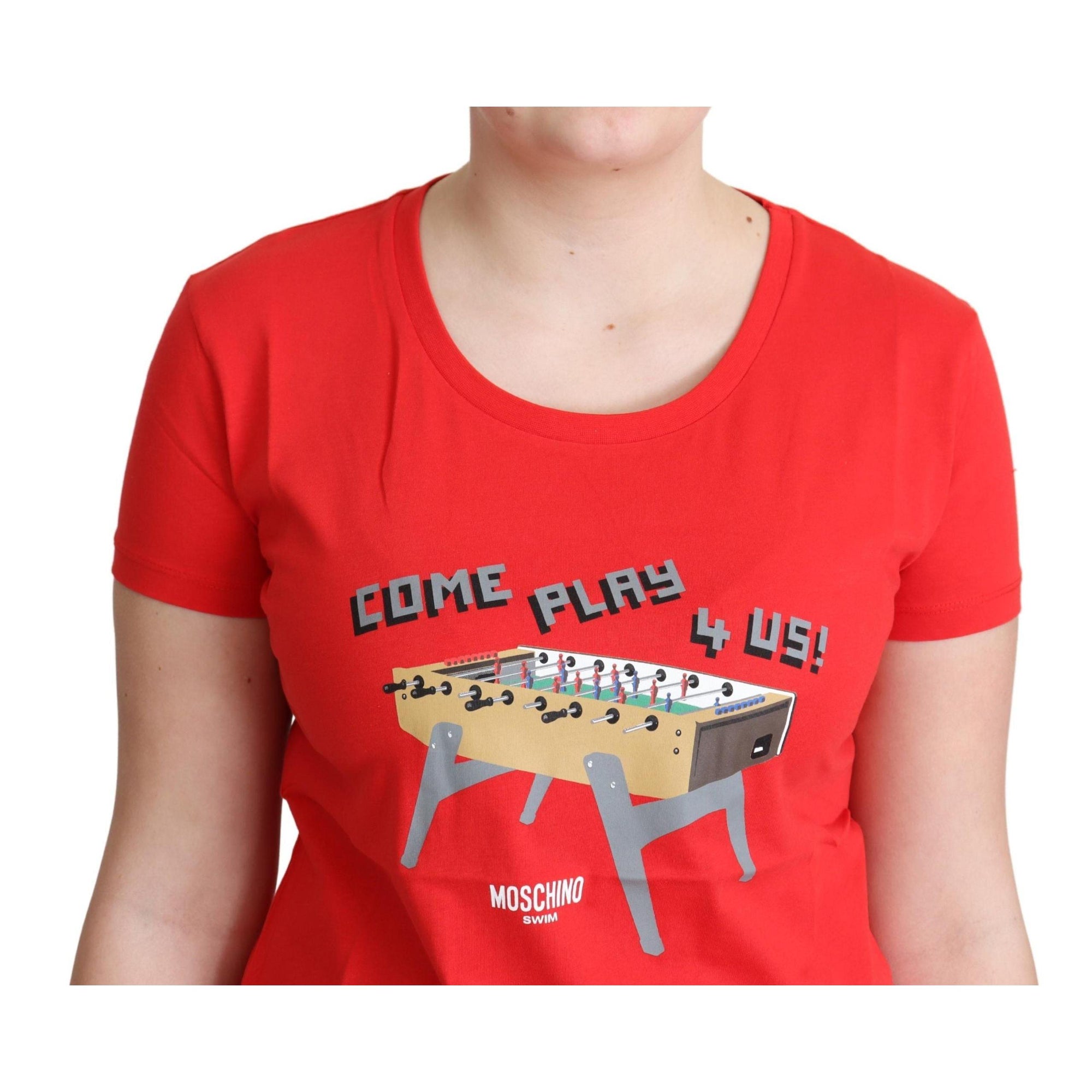 Elevate your casual style with this vibrant red tee featuring ‘Come Play 4 Us’ print from the coveted Moschino collection. Ideal for off-duty days, this pure cotton t-shirt showcases a classic round neck and short sleeves, ensuring comfort without compromising on style. Boasting Moschino’s iconic logo details and Italian craftsmanship, this top is a must-have for fashion enthusiasts.